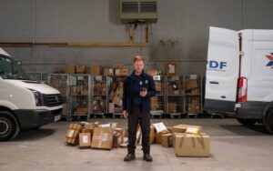 Bu bir tarayıcı. Deponun kalbi. Çok pahalı ve önemli. Kaybedersen ödersin. Paketi tarayıcıya okuttuğunda artık o senindir. Sisteme kayıtlıdır. Seyahatinin her adımını takip edebiliriz. Saatlik dağıtım vardır. Belli paketlerin belli zamanda dağıtılmaları gerekir. Dağıtman için bir saatin var ve hepsini alıcıya ulaştırman gerek.